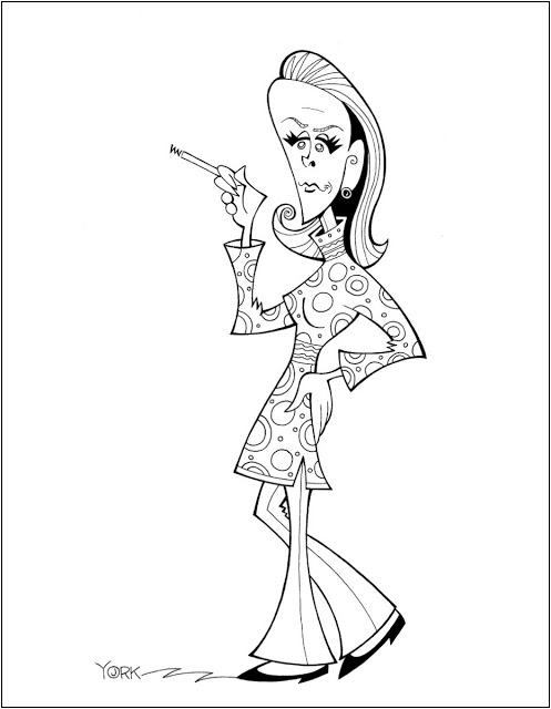 | Original caricature by Jeff York of Julie Harris in the play “Forty Carats.” (copyright 2017) |