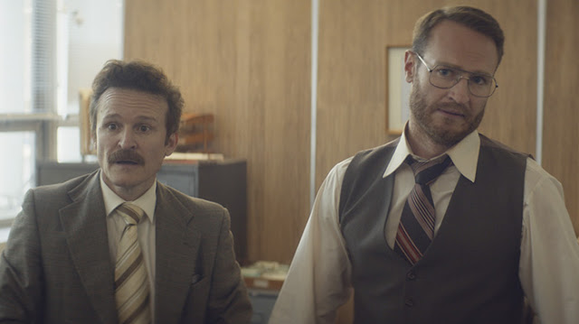 Lawsen wrote himself a wicked part as Terry Philips, the man who occupies the office as the short starts. Then, Nathan Klein (Damon Herriman) shows up late, and we’re not sure he is who he says he is. Of course, it helps that the psychiatrist’s regular secretary is out sick so the proper doc cannot be identified. And the ditzy temp Daisy (Eliza Logan) adds no help whatsoever in the search for clarity.