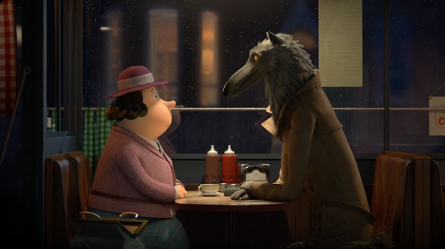Directors Jakob Schuh and Jan Lachauer tell their story with a sly, droll edge that is veddy, veddy British. The voice work of Dominic West, Tamsin Greig, Bertie Carvel and Rob Brydon is understated perfection, with West being particularly impressive voicing the narrating wolf. The animation is full of visual wit, and the character designs have a sophistication to them that is definitely for adults, not children.