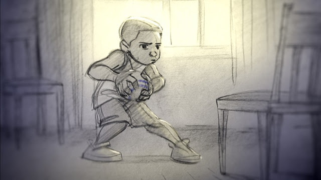 DEAR BASKETBALL was written and narrated by another legend, Los Angeles Laker Kobe Bryant. His story is a love letter to the game that obsessed him as a child and took him from the neighborhood courts to the vaulted venues of the NBA. Keane’s animation tells the story of Bryant’s memories by blending one scene into another in a morphing magic act. Little Kobe’s rolled up tube sock that he used as a makeshift ball turns into a real basketball in the batting of an eye. The whole short is done this way, moving through Bryant’s life and career, from college to The Forum in Inglewood to his championship celebrations. And at the end, Bryant faces up to his body betraying him as every athlete must when they are too old to play the game. It’s all done in a pencil portrait style against a yellowed paper background that gives it such bittersweet nostalgia.