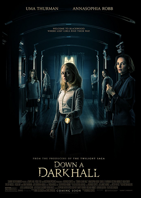 Horror movies that place surly teen girls in suspect schools are as old as the genre itself. Rodrigo Cortes’ DOWN A DARK HALL doesn’t even try to live up to classics like Dario Argento’s SUSPIRIA (1977) or cult classics like Graeme Revell’s THE CRAFT (1996). Hell, it barely can hold a flickering candle to the 1973 TV-movie SATAN’S SCHOOL FOR GIRLS. What exactly it’s trying to do remains a mystery even after seeing it. Its story is incoherent. Accomplished stars like Uma Thurman, AnnaSophia Robb, and Isabelle Fuhrman have thinly written characters to play. And despite a lot of money being sunk into a ginormous, Gothic mansion setting, most of the film fails to bring any of its interiors to genuinely terrifying life. Instead, the whole movie is shot so darkly, it begs the question if the production was limited in such sets. The less light, the less we see of how little is really there. Sadly, that could be a metaphor for the entire venture.